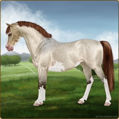 Color: Dark Red Roan Dun Sabino Snowflake Appaloosa