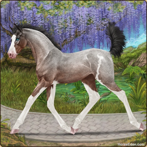 Color: Mahogany Bay Roan Splash White Sabino