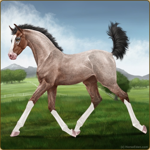 Color: Mahogany Bay Roan Sabino