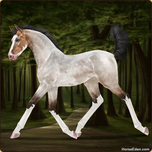 Color: Light Bay Roan Dun Splash White Sabino Rabicano