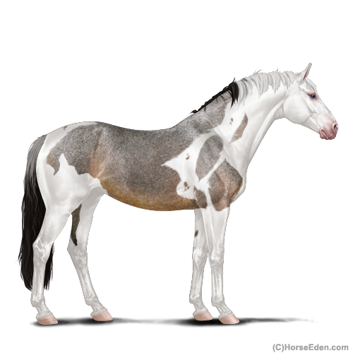 Color: Seal Brown Roan Dun Tobiano Splash White