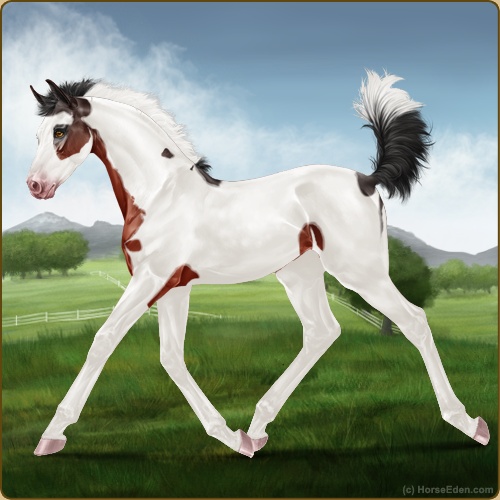 Color: Blood Bay Tobiano Splash White Sabino Frame