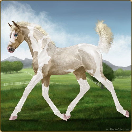 Color: Chocolate Dunalino Roan Tobiano Splash White
