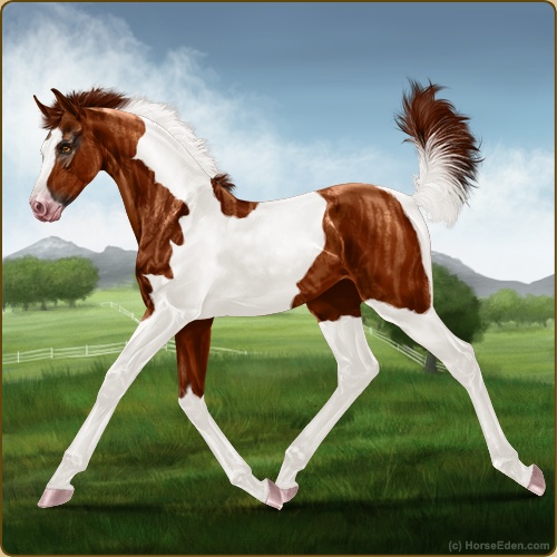 Color: Chestnut Tobiano Sabino Brindle