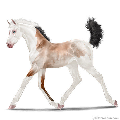 | Foal has a 100% chance at being buckskin, 50% chance of being roan, 50% chance at being silver, and a 50% chance at being sabino... |