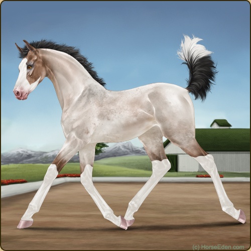 Color: Mahogany Bay Roan Dun Splash White Sabino