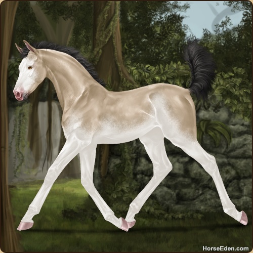 Foal has a 100% chance at being buckskin, 50% chance of being roan, 50% chance at being silver, and a 50% chance at being sabino...