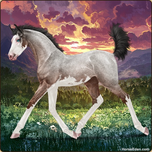 Color: Mahogany Bay Roan Splash White Sabino