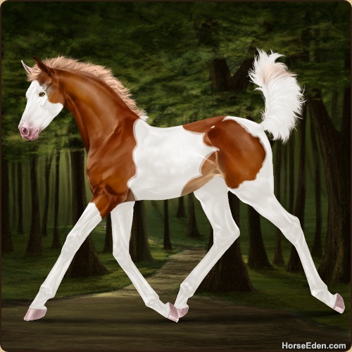 Color: Flaxen Chestnut Tobiano Splash White Sabino