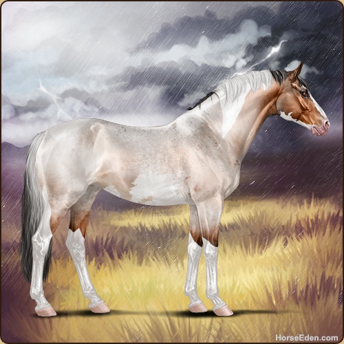 Color: Light Bay Roan Tobiano Sabino Rabicano