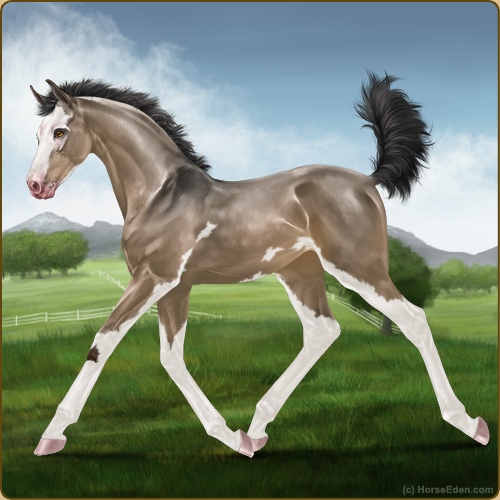 Foal has a 100% chance at being buckskin, 50% chance of being roan, 50% chance at being silver, and a 50% chance at being sabino...