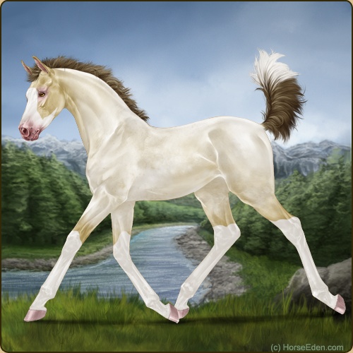 Color: Amber Champagne Roan Splash White