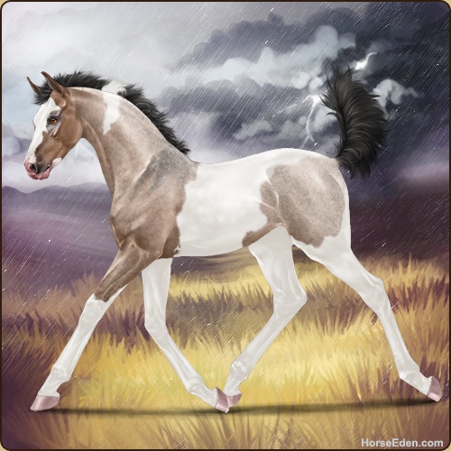Color: Mahogany Bay Roan Dun Tobiano Sabino