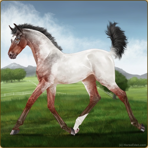 Color: Blood Bay Roan Near Fewspot Appaloosa