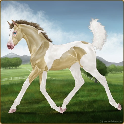 Color: Amber Champagne Tobiano Splash White Sabino