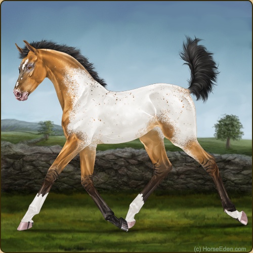 Color: Golden Bay Dun Near Fewspot Appaloosa