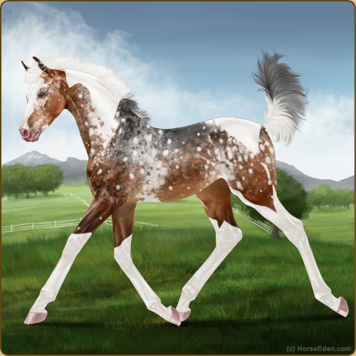 Color: Light Bay Tobiano Sabino Varnish Snowflake Appaloosa