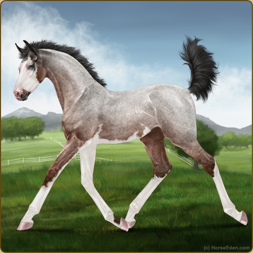 Color: Mahogany Bay Roan Splash White