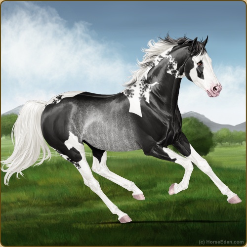 Color: Black Tobiano Splash White Sabino Rabicano
