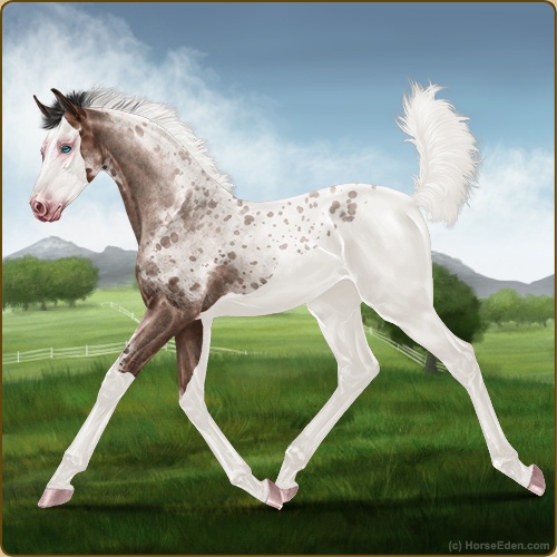 Color: Brown Roan Splash White Rabicano Near Leopard Appaloosa