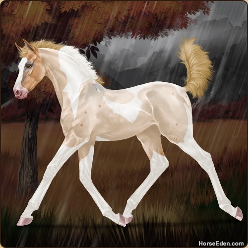Color: Flaxen Red Roan Dun Tobiano Sabino