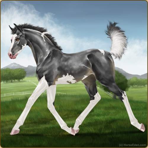 Color: Black Tobiano SabinoHorse Nbr: 42998255Breed: Anglo ArabianSex: ColtBirthdate: December 19, 2025Age: 1Birth Year: 197Straws Drawn: 0Height: 11.1 Hands