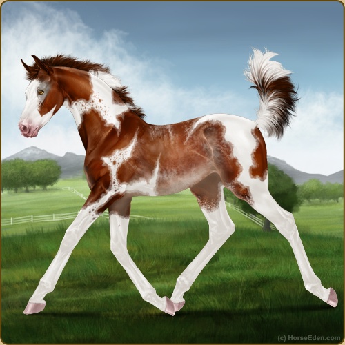 Color: Chestnut Tobiano Splash White Sabino Rabicano