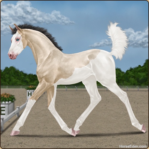 Color: Buckskin Roan Splash White Sabino