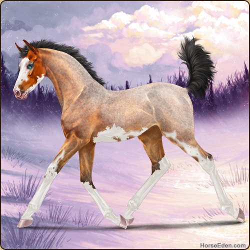 Color: Copper Bay Roan Splash White Sabino