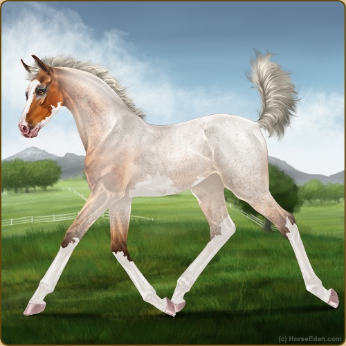 Color: Silver Copper Bay Roan Sabino