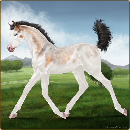 Color: Copper Bay Roan Dun Splash White Sabino