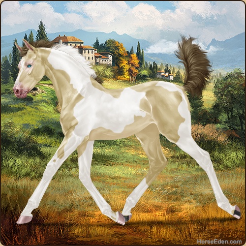 Color: Amber Creme Pearl Tobiano
