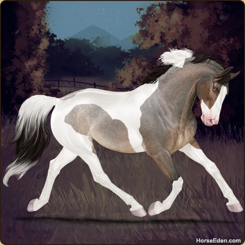 Color: Seal Brown Buckskin Roan Tobiano Splash White