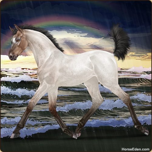 Color: Mahogany Bay Roan Dun Varnish Frost Appaloosa