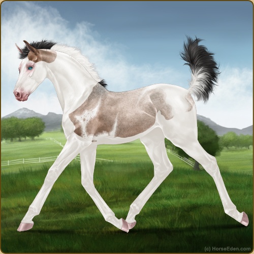 Color: Mahogany Bay Roan Dun Tobiano Splash White