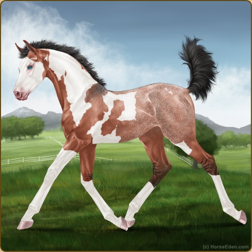 Color: Blood Bay Dun Splash White Frame Varnish Frost Appaloosa