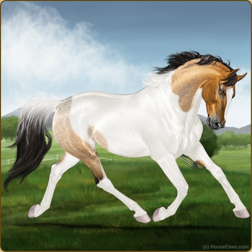 Color: Golden Bay Roan Dun Tobiano Rabicano