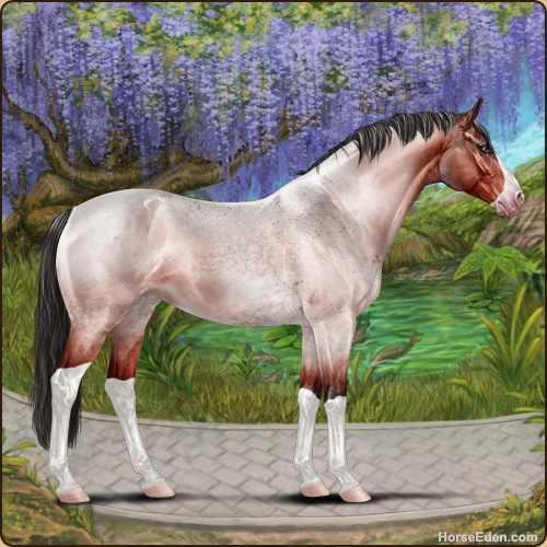Color: Blood Bay Roan Splash White