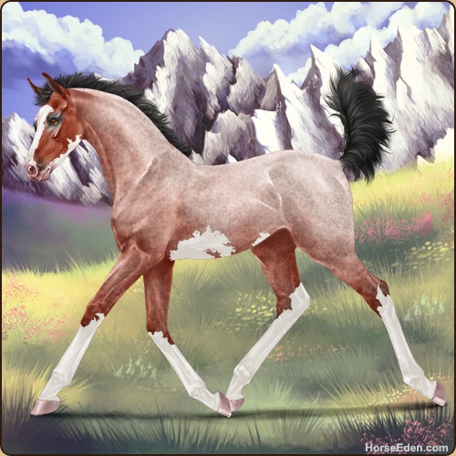 Color: Blood Bay Roan Sabino