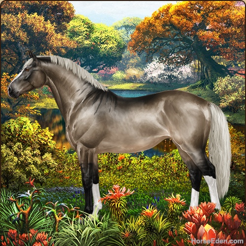 | No GP, no A+... but dappled dunalino with a new splash coat that has a white tail. :D -HEE Click- |