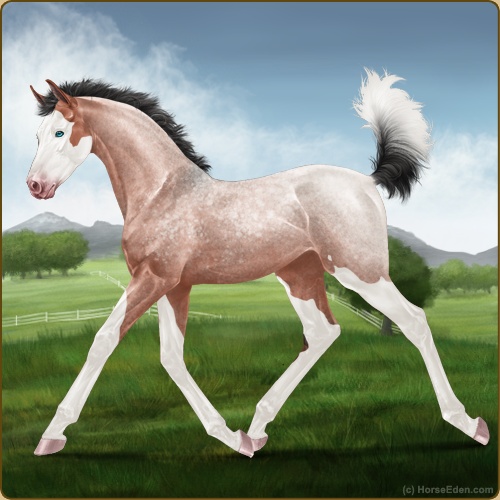 Color: Blood Bay Roan Dun Splash White Varnish Frost Appaloosa