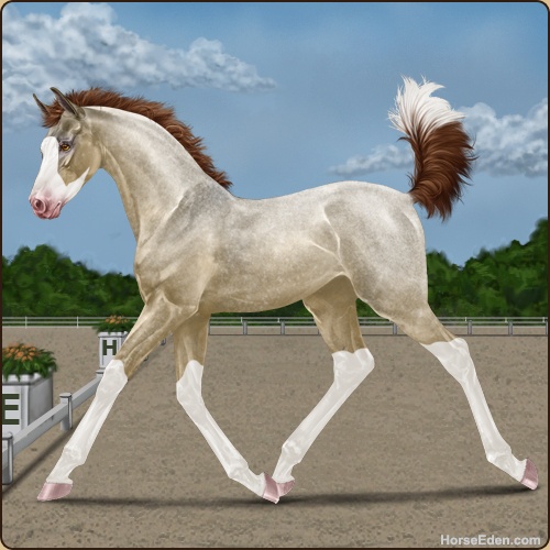 Color: Dark Red Roan Dun Splash White Snowflake Appaloosa