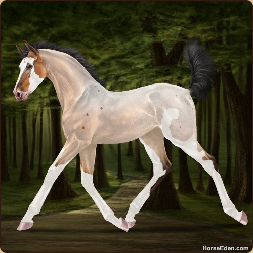 Color: Copper Bay Roan Dun Sabino Varnish Frost Appaloosa