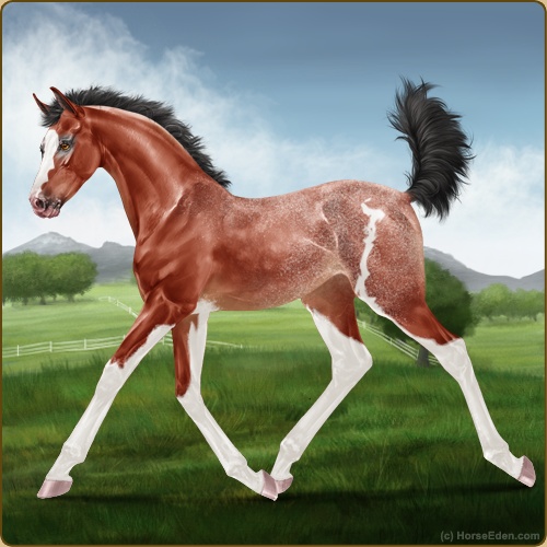 Color: Blood Bay Sabino Varnish Frost Appaloosa