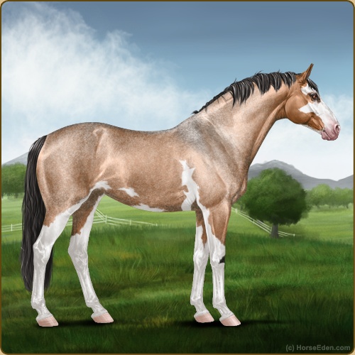 Color: Light Bay Roan Dun Sabino Frame