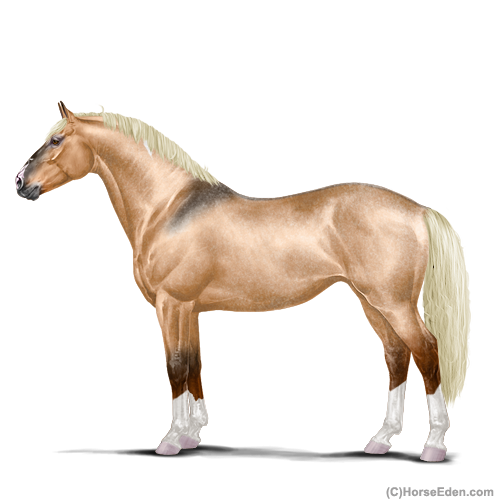 Color: Flaxen Red Roan Dun Tobiano