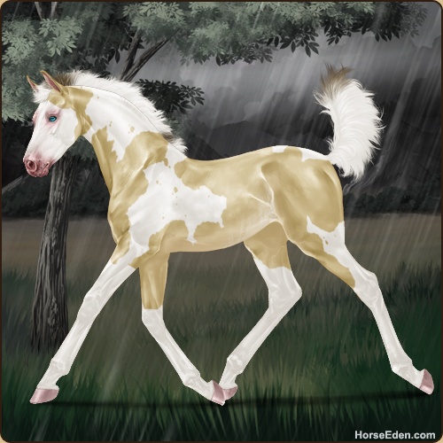 Color: Amber Champagne Tobiano Splash White Rabicano