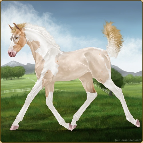 Color: Flaxen Red Roan Dun Tobiano Splash White