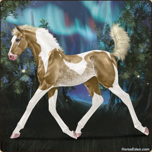 Color: Chocolate Palomino Tobiano Splash White Rabicano