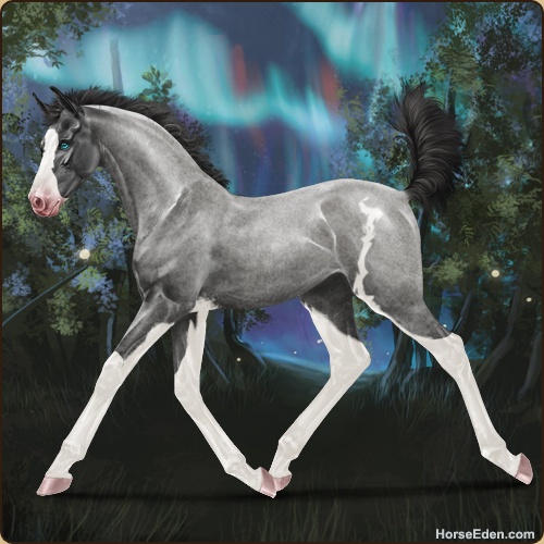 Color: Smokey Blue Roan Splash White Sabino